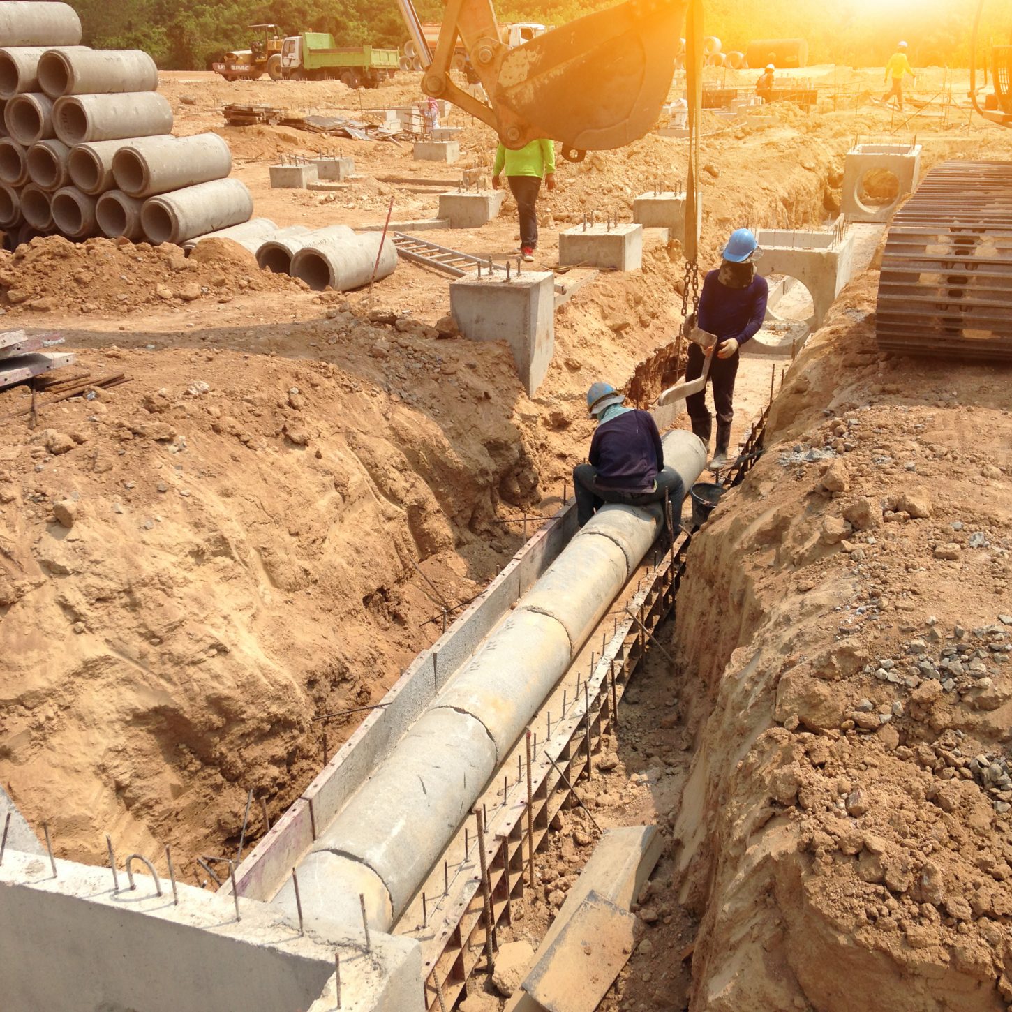 Een andere vorm van draineren vindt plaats door net onder het grondoppervlak buizen te leggen die regenwater snel kunnen afvoeren. Dit beperkt waterplassen en ander stilstaand water bij hevige regenval en onweders, maar wordt wel pas in een later stadium aangelegd.